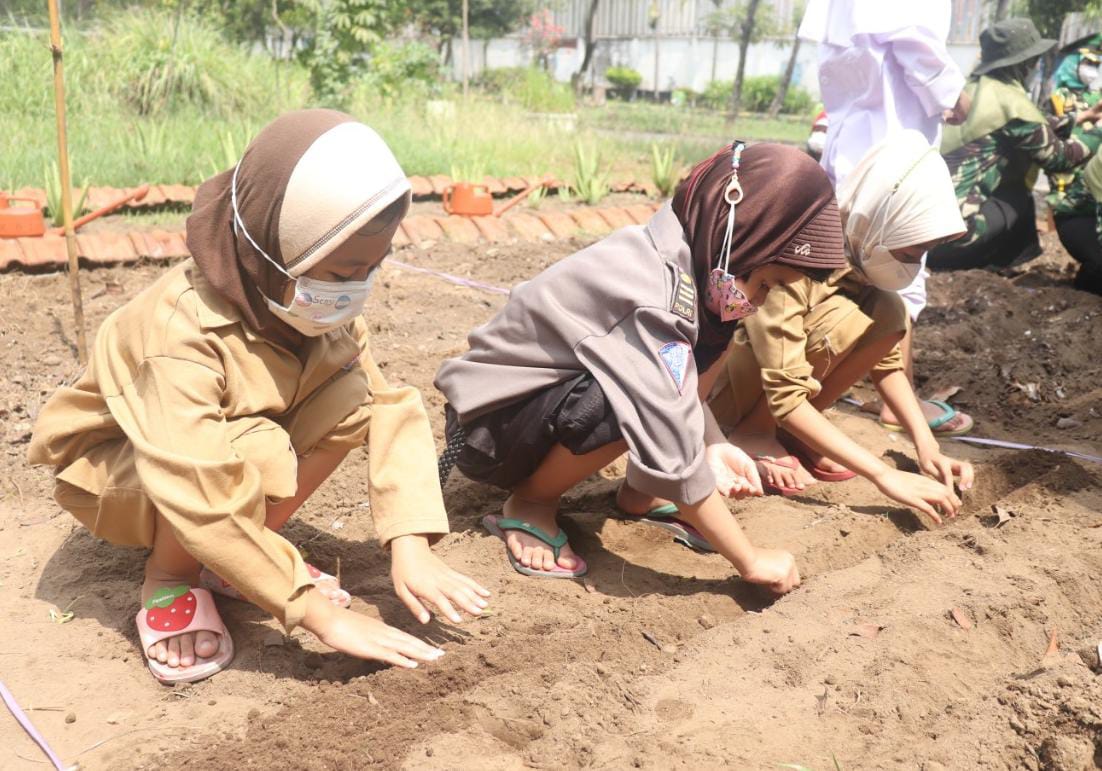 Siti Aminah selaku kepala sekolah dalam sambutannya menyampaikan bahwa setiap kita bisa menjadi pahlawan, pahlawan untuk diri sendiri dan orang lain dengan cara memberikan kemanfaatan secara ihlas, semata-mata mengharapkan keridhaan Allah SWT. Jiwa kepahlawan ditanamkan sejak dini supaya menjadi habit hingga kelak dewasa. Kali ini melalui kegiatan kerja bakti membersihkan kebun, membuang sampah sesuai jenisnya di tempat sampah, dan menanam biji kangkung menggunakan media langsung tanah, polibek, dan media air diharapkan anak-anak menjadi PAHLAWAN LINGKUNGAN sejak dini. (han)