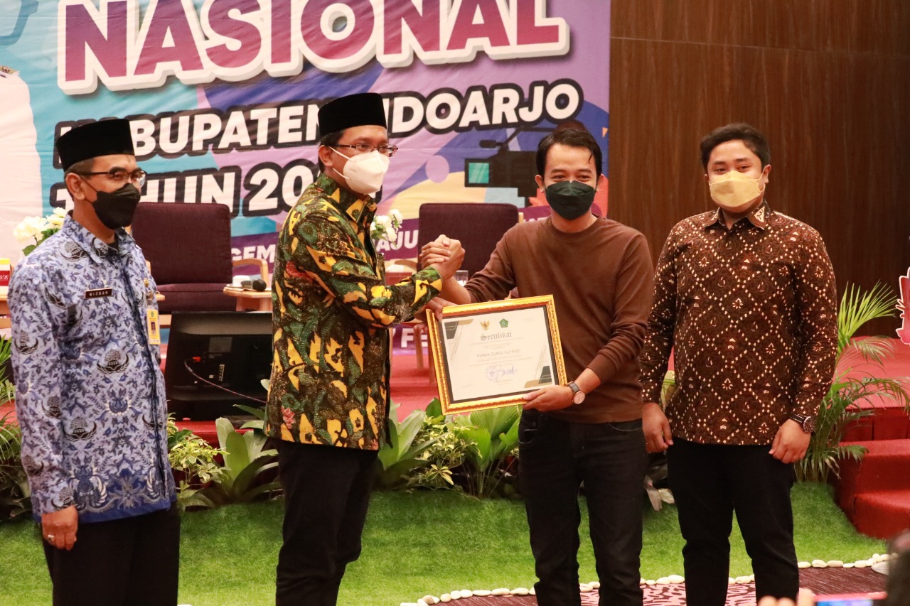 Pada kesempatan itu, Bupati Sidoarjo memberikan penghargaan kepada sejumlah awak media yang dinilai berdedikasi tinggi, berkontribusi dalam pembangunan Kabupaten Sidoarjo.