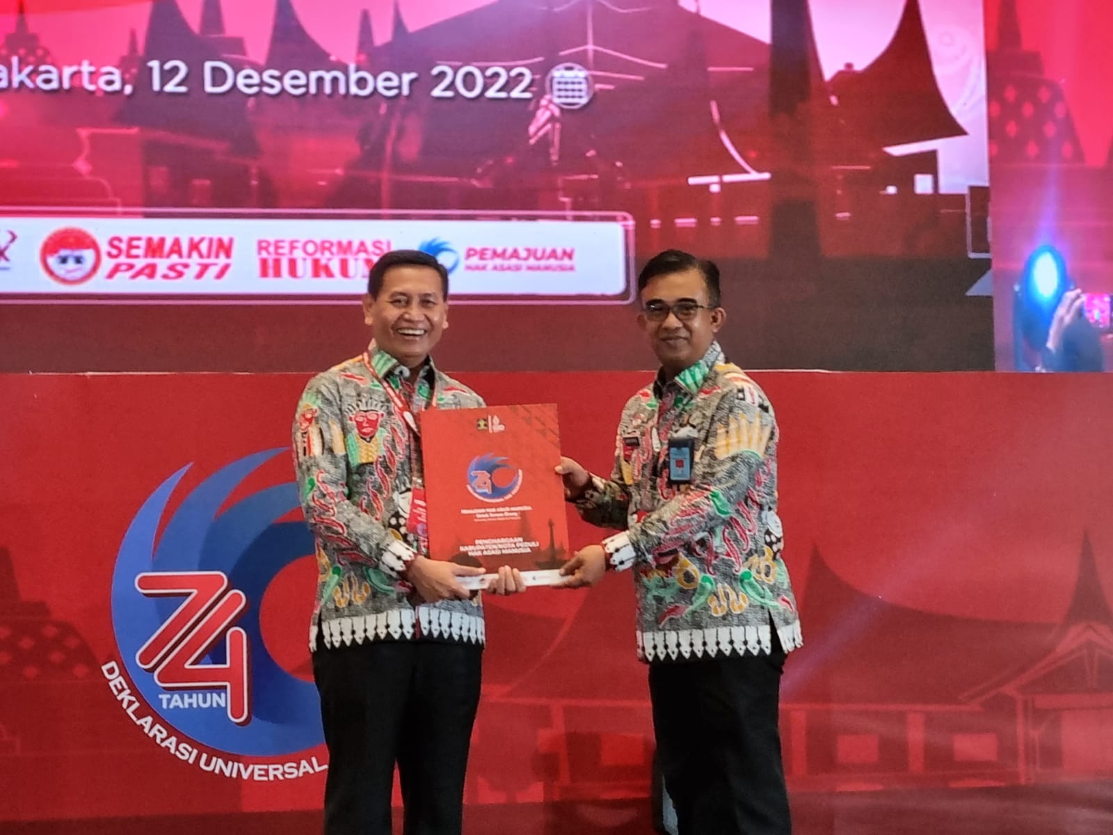 “Penghargaannya diserahkan secara simbolis oleh Wakil Presiden Ma’ruf Amin dan Dirjen HAM Mualimis Abdi siang ini di Jakarta,” lanjut Agung.