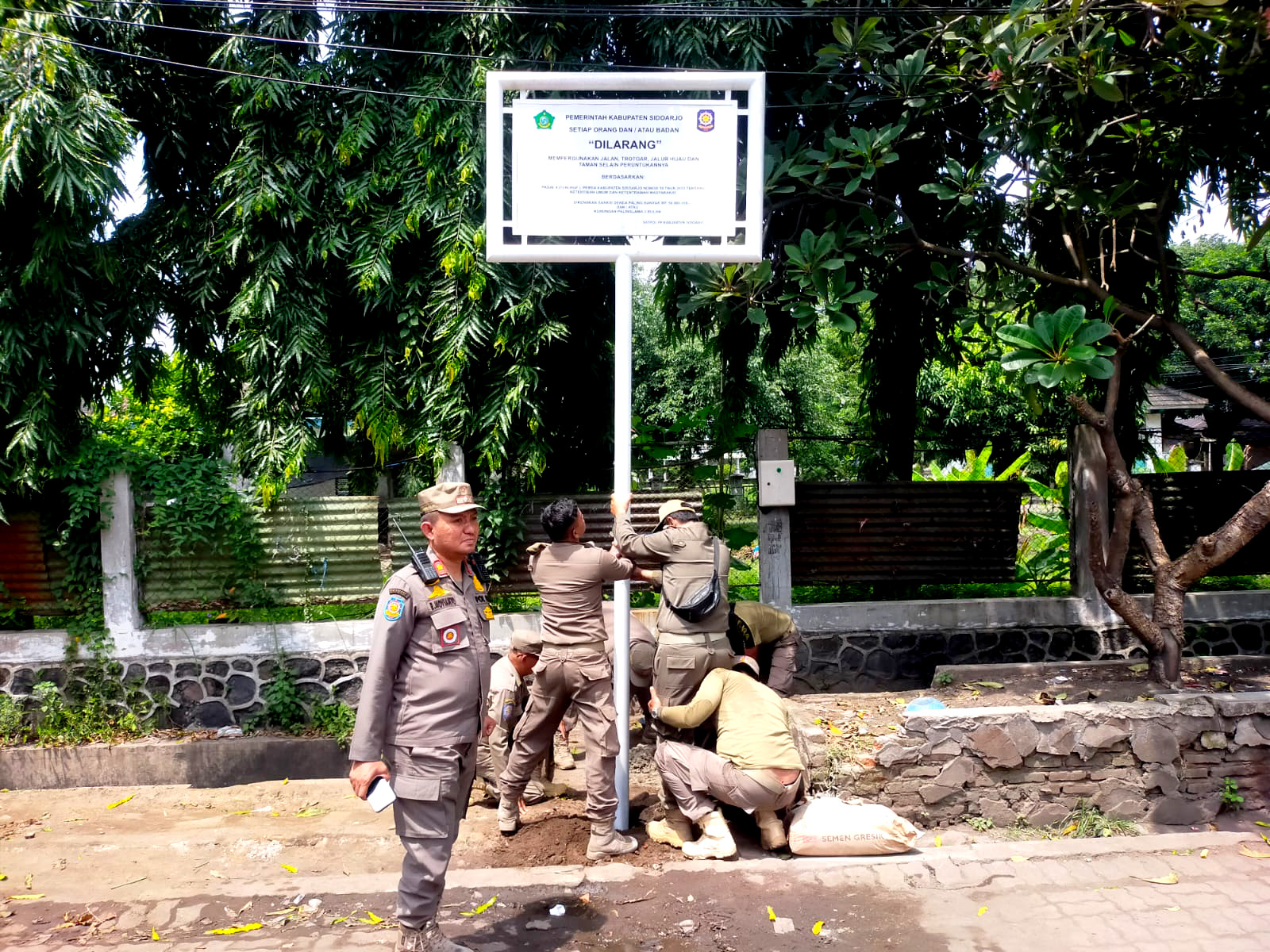 SIDOARJO – Satuan Polisi Pamong Praja (Satpol PP) Kabupaten Sidoarjo terus memperkuat upaya menjaga ketertiban dan kenyamanan ruang publik dengan mengedepankan langkah pencegahan. Salah satunya melalui pemasangan rambu larangan di sejumlah titik rawan aktivitas yang dinilai menyimpang dari fungsi fasilitas umum, Selasa (20/1).