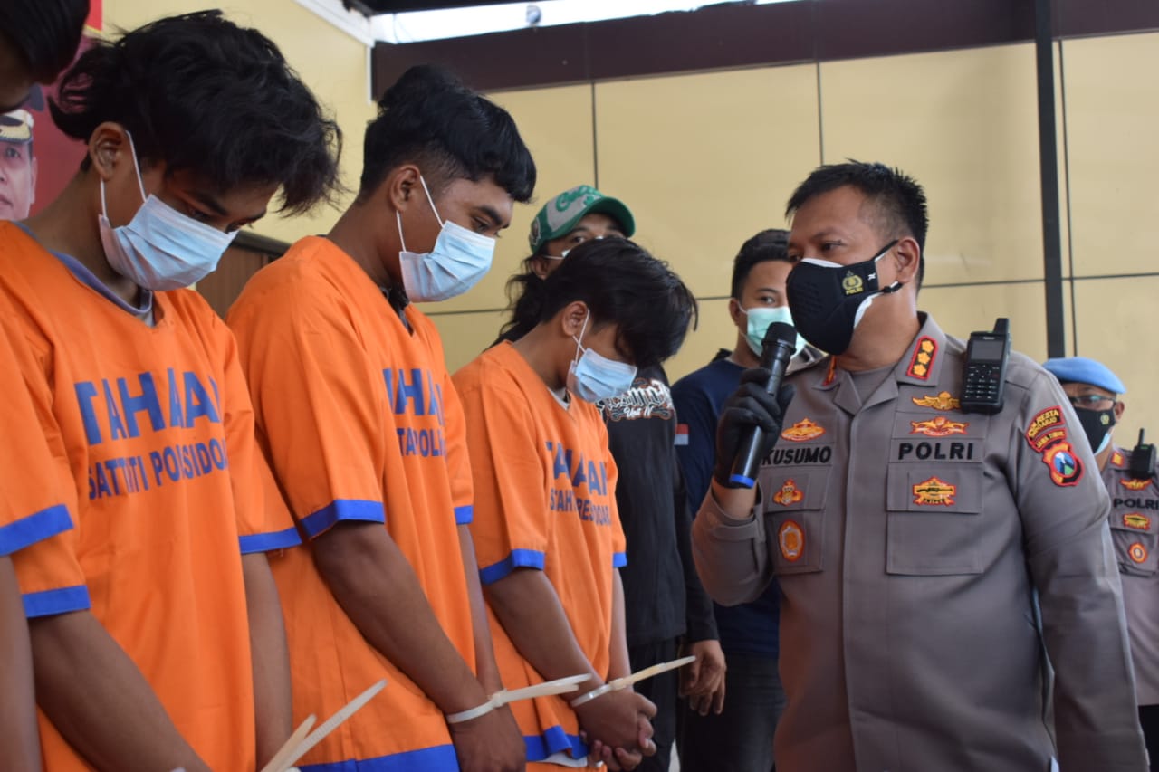 Penangkapan dilakukan setelah adanya beberapa keterangan saksi-saksi dan bukti cctv yang ada di sekitaran TKP. Mereka melakukan pengeroyokan terhadap RV (16) asal Balongbendo Sidoarjo usai menonton balap liar.